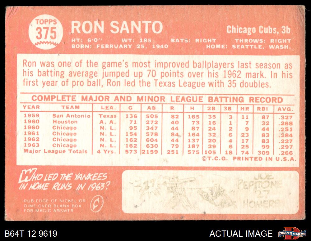 1964 Topps #375 Ron Santo 1.5 - FAIR