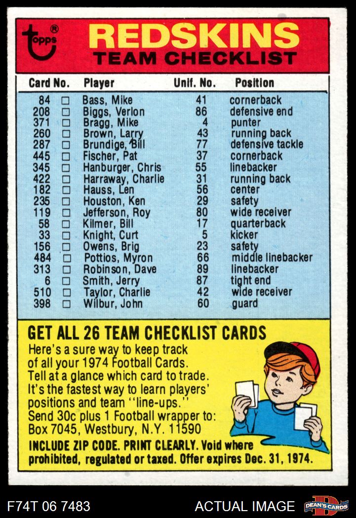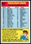 1974 Topps Checklist Washington Redskins Team 6 - EX/MT