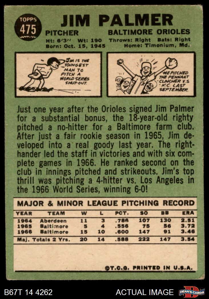 1967 Topps #475 Jim Palmer 2 - GOOD