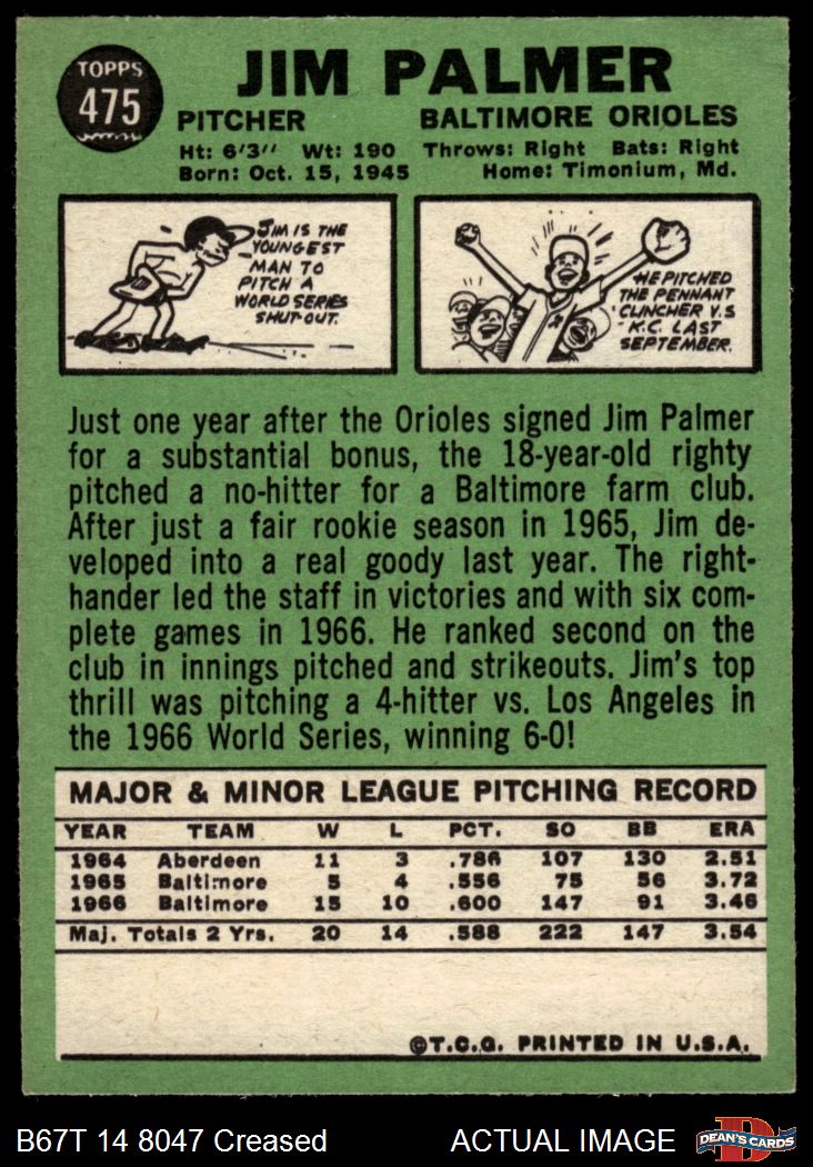1967 Topps #475 Jim Palmer 3 - VG