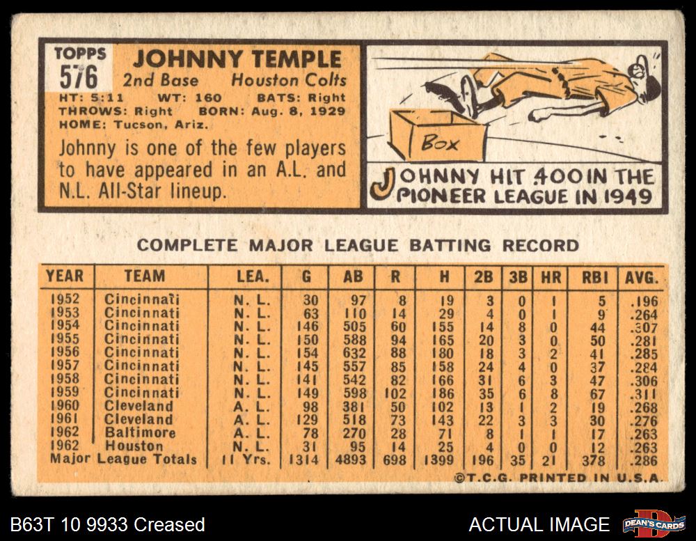 1963 Topps #576 Johnny Temple