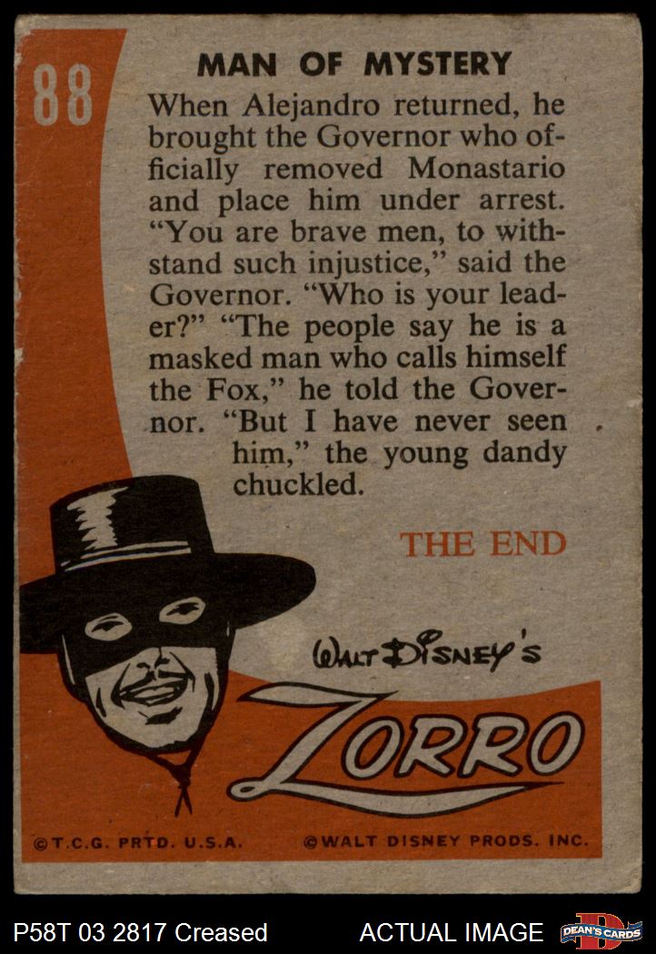 1958 Topps Zorro #88 Man Of Mystery 2 - GOOD