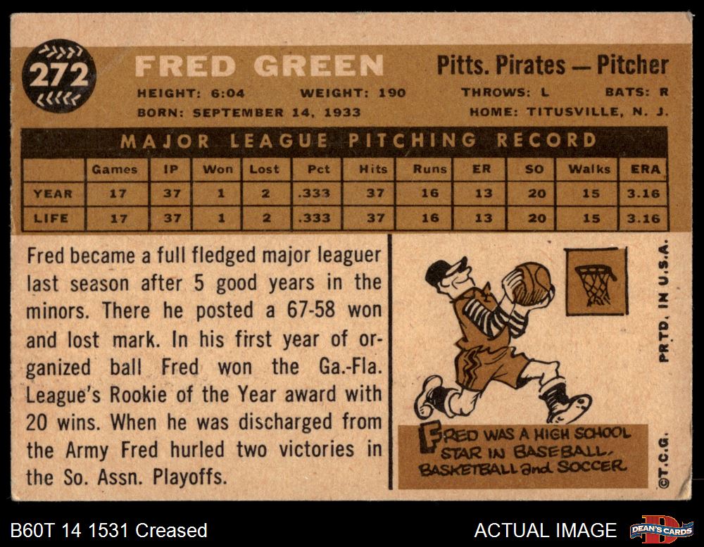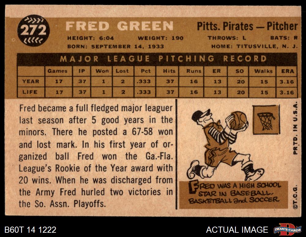 1960 Topps #272 Fred Green 3 - VG