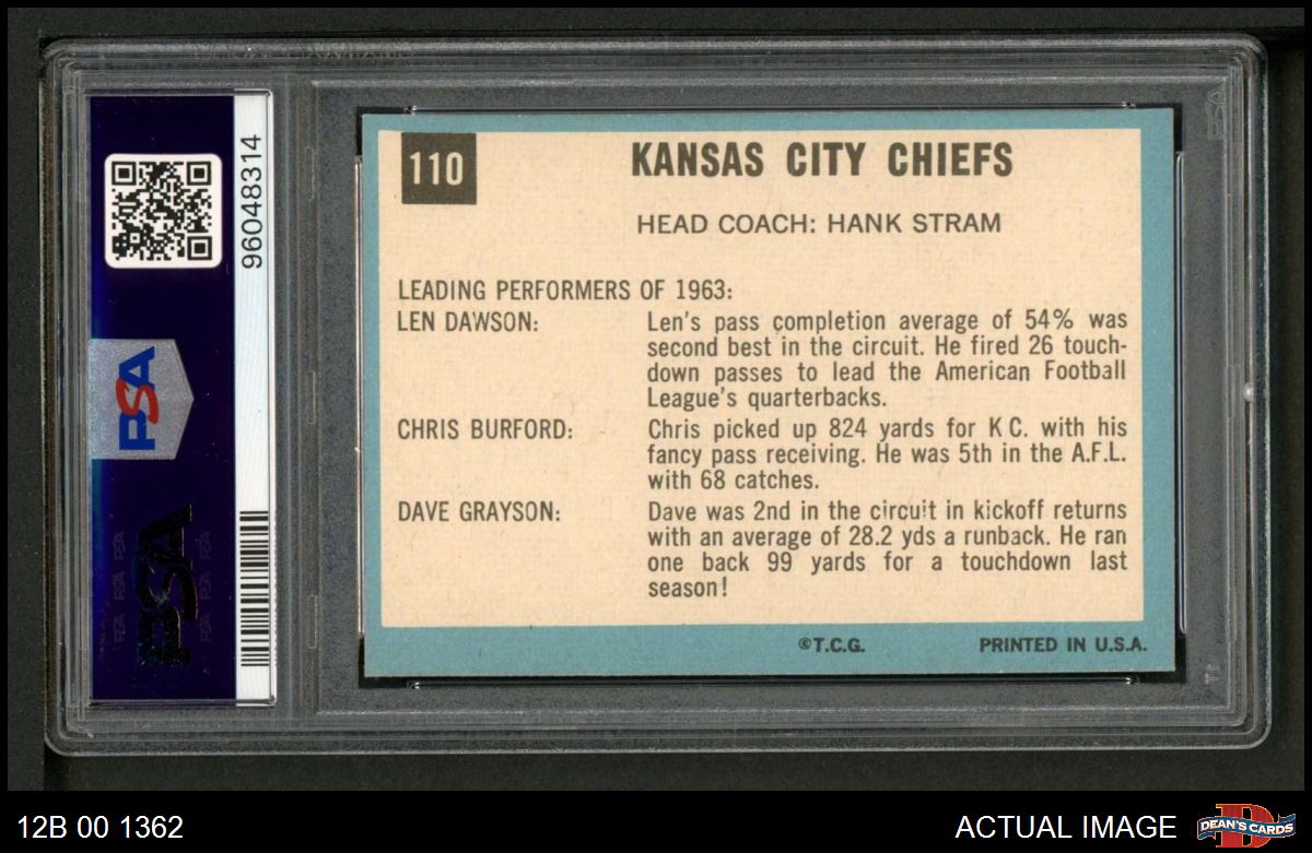 1964 Topps #110 Kansas City Chiefs Team PSA 7 - NM