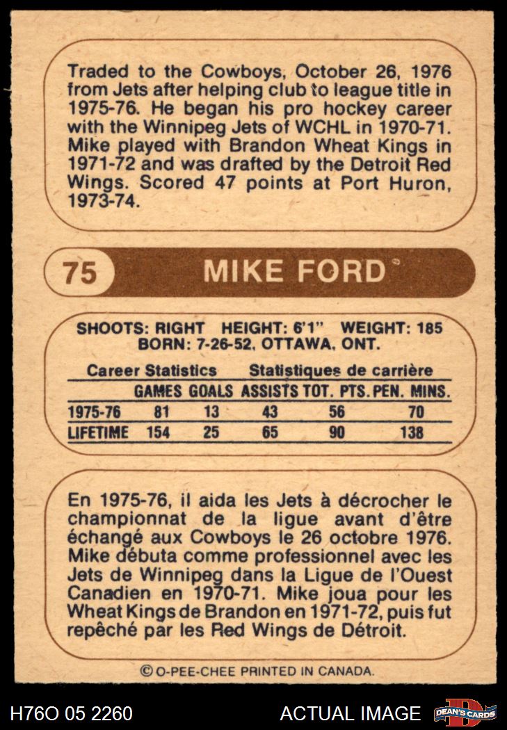1976 O-Pee-Chee WHA #75 Mike Ford