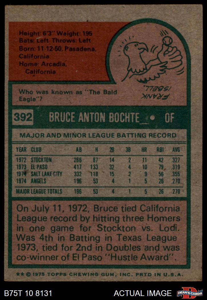 1975 Topps #392 Bruce Bochte 5 - EX