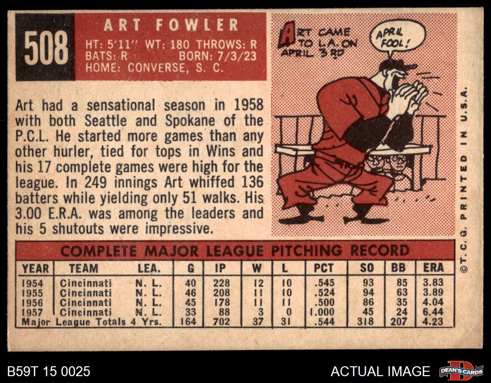 1959 Topps #508 Art Fowler