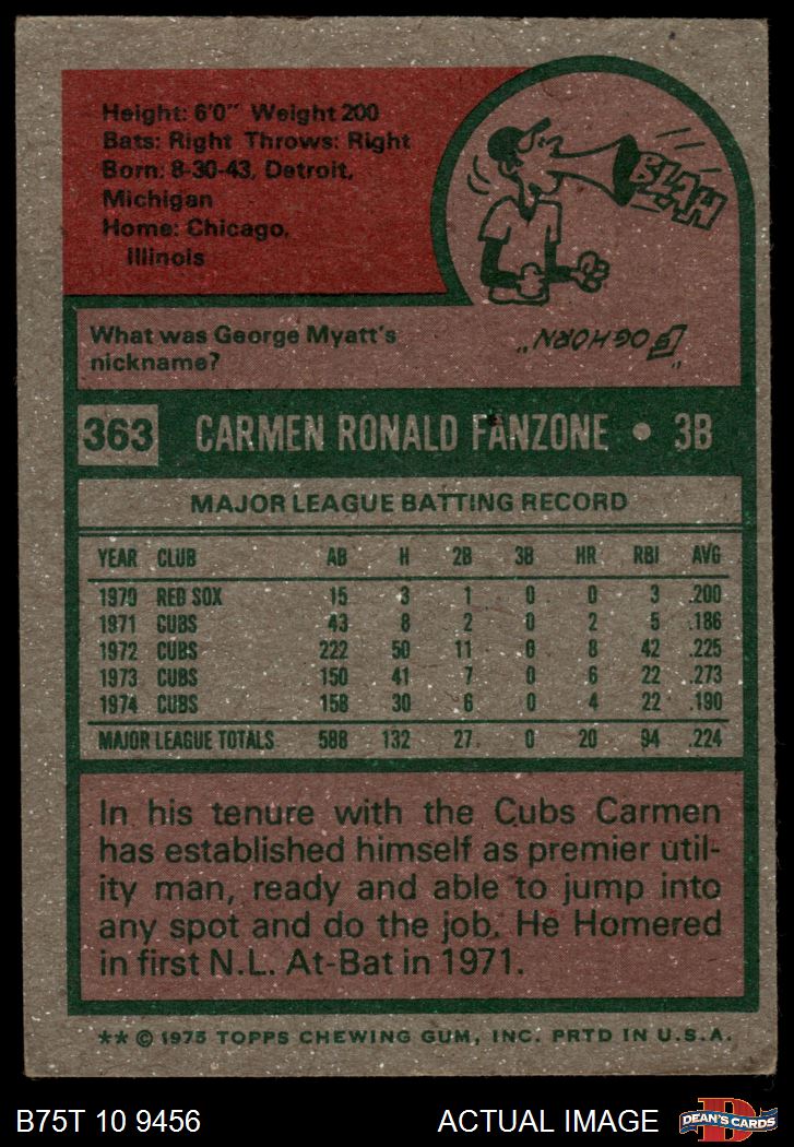 1975 Topps #363 Carmen Fanzone 4 - VG/EX