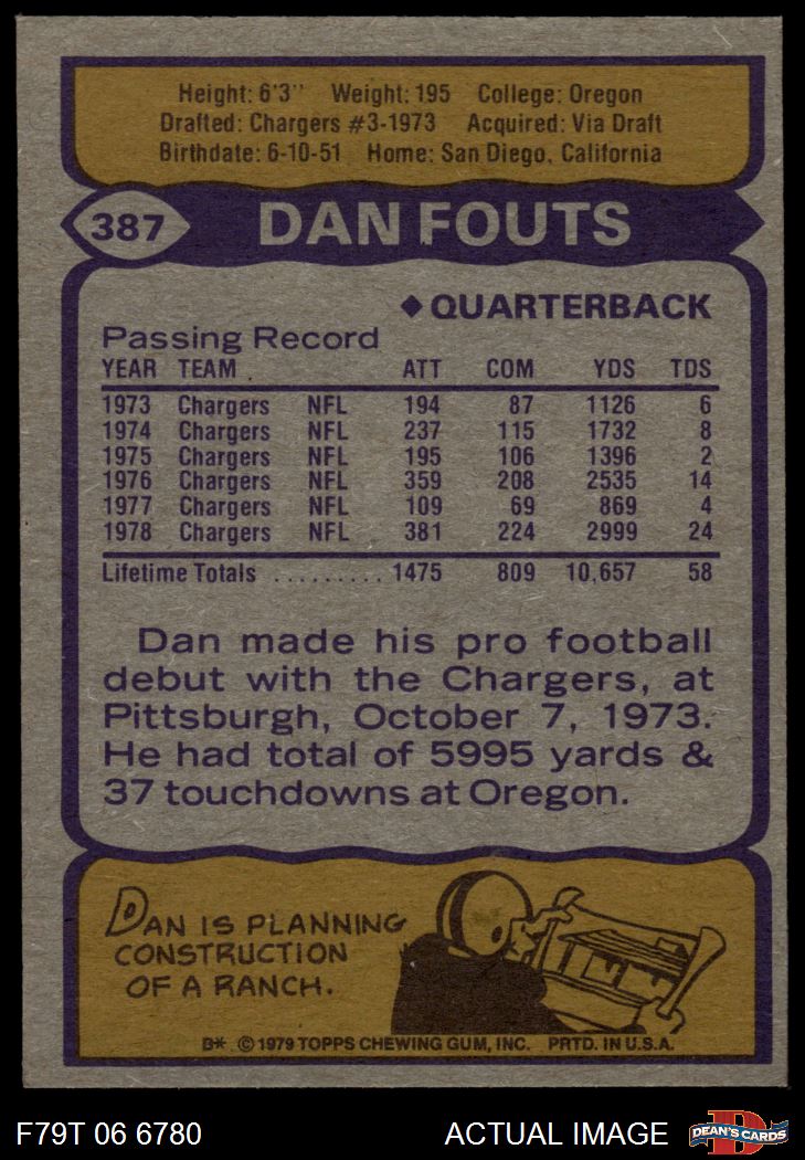 1979 Topps #387 Dan Fouts 7 - NM
