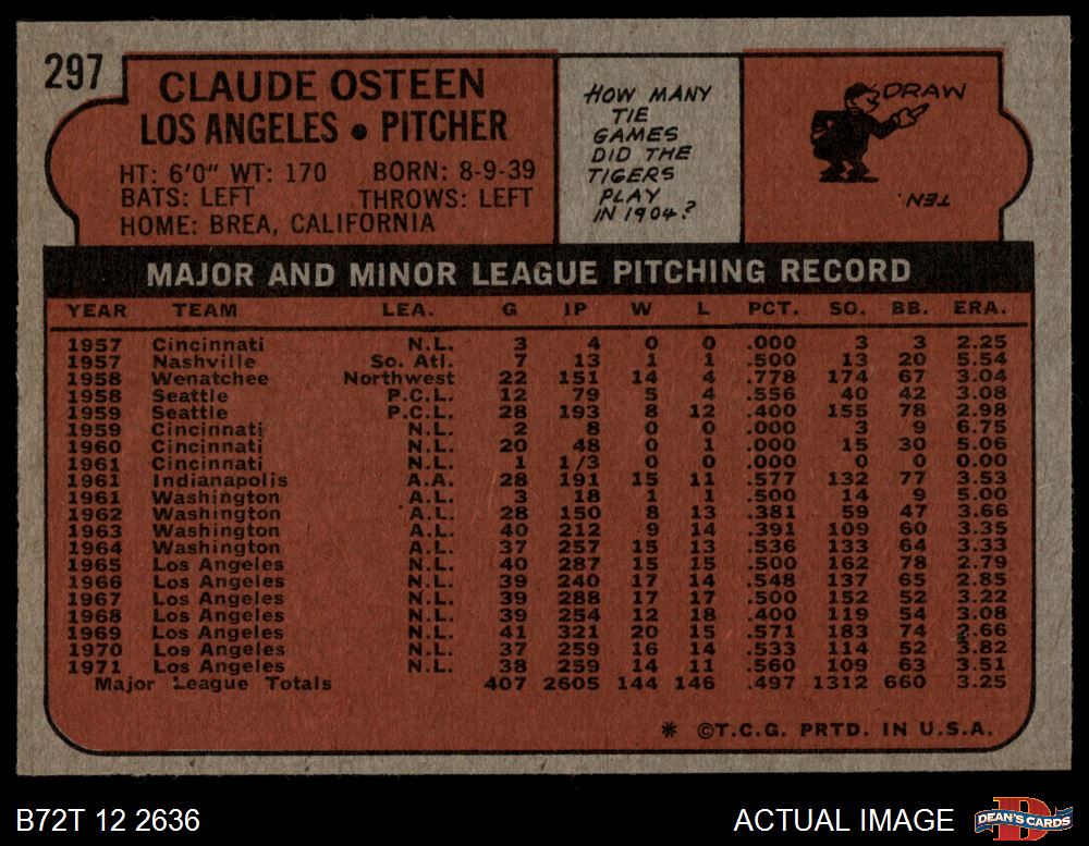 1972 Topps #297 Claude Osteen 6 - EX/MT