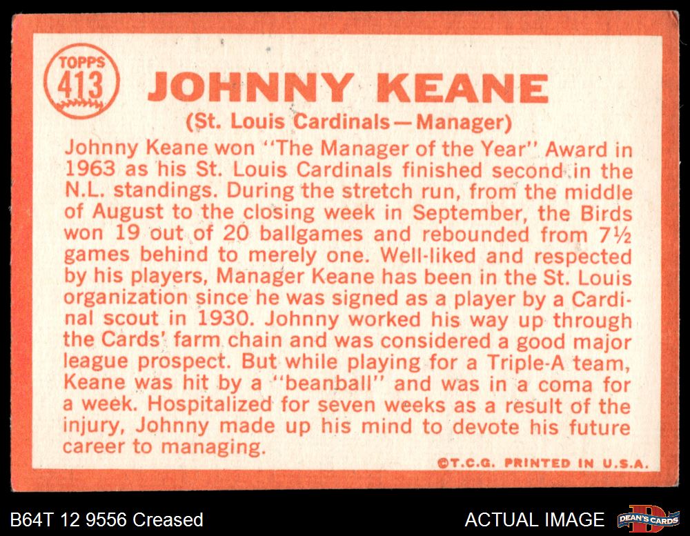 1964 Topps #413 Johnny Keane 2 - GOOD