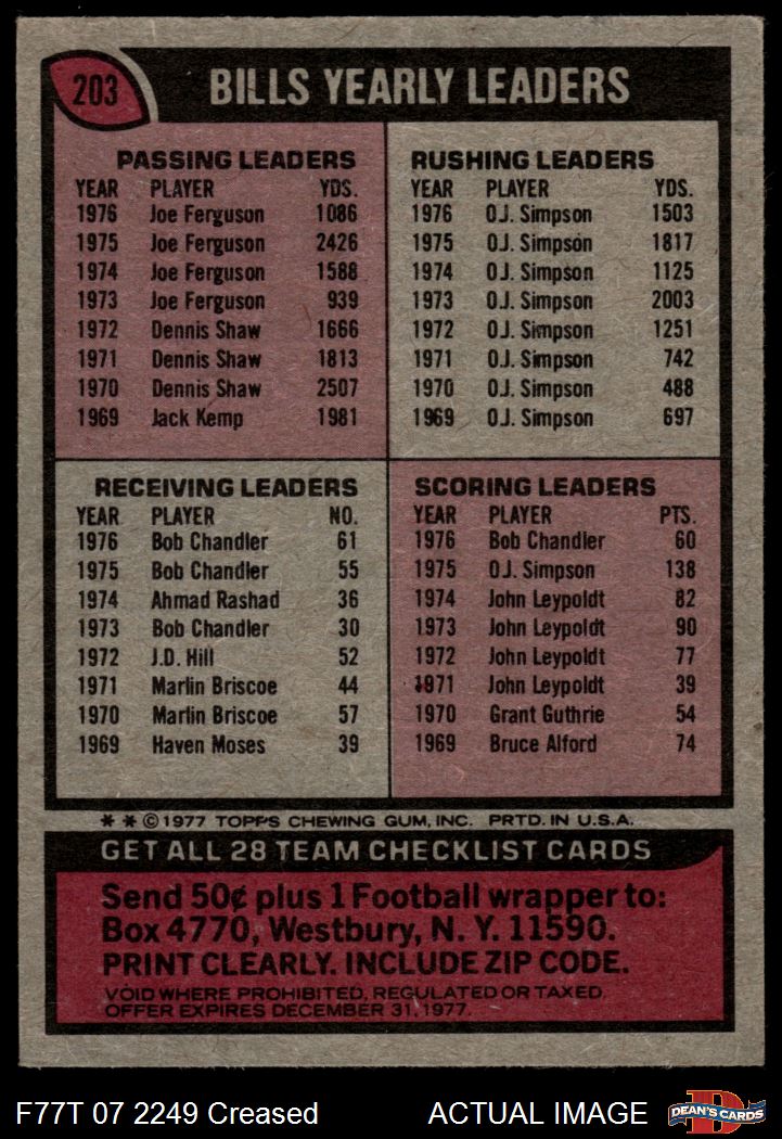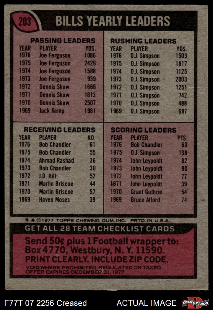 1977 Topps #203 Bills Team Checklist 2 - GOOD
