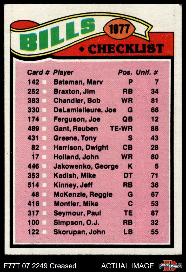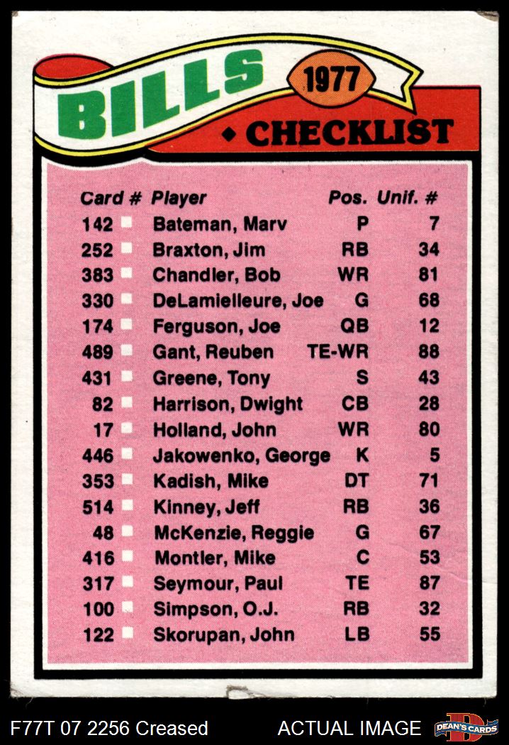 1977 Topps #203  Bills Team Checklist Front Thumbnail