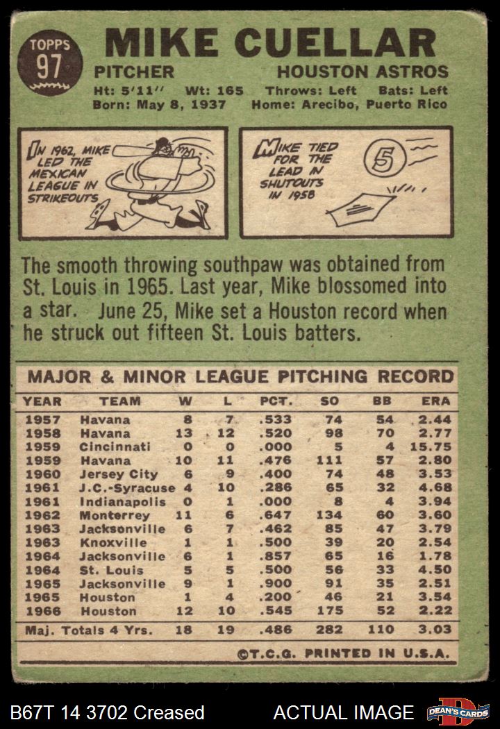 1967 Topps #97 Mike Cuellar 1.5 - FAIR