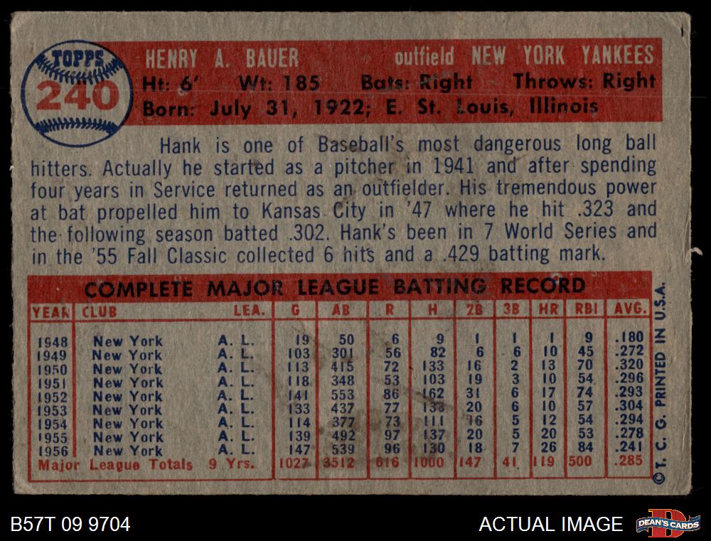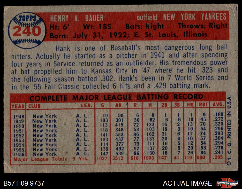 1957 Topps #240 Hank Bauer 2 - GOOD
