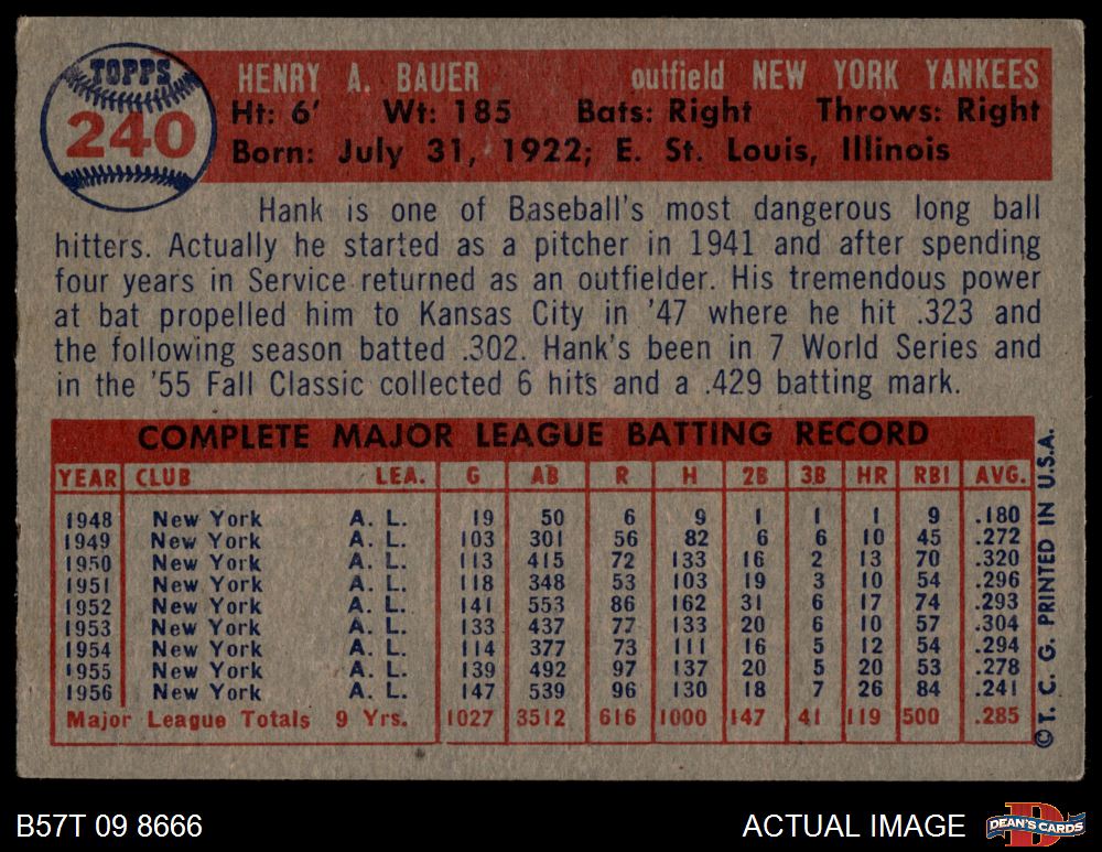 1957 Topps #240 Hank Bauer 3.5 - VG+