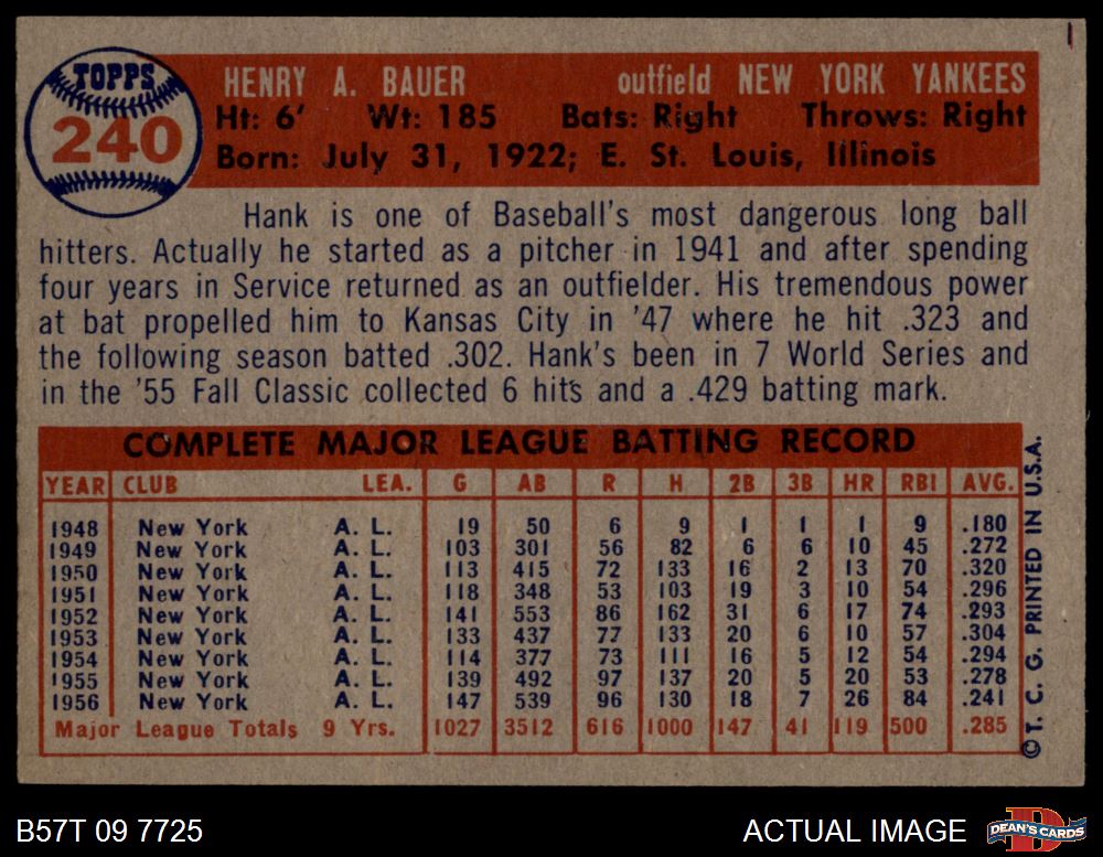 1957 Topps #240 Hank Bauer 5 - EX
