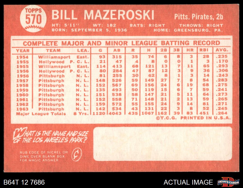 1964 Topps #570 Bill Mazeroski 7 - NM