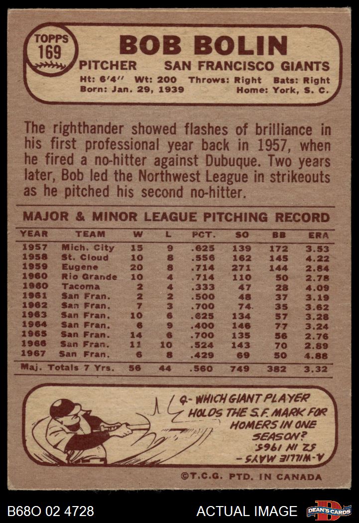 1968 O-Pee-Chee #169 Bobby Bolin 4 - VG/EX