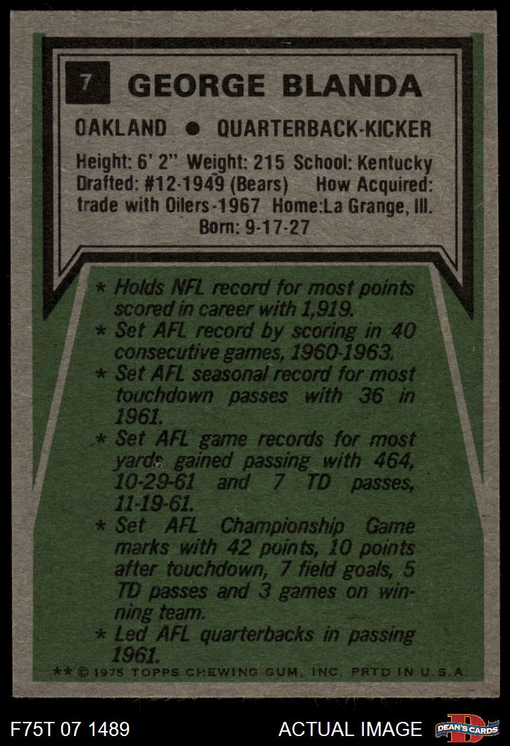 1975 Topps #7 - George Blanda Highlights 3 - VG