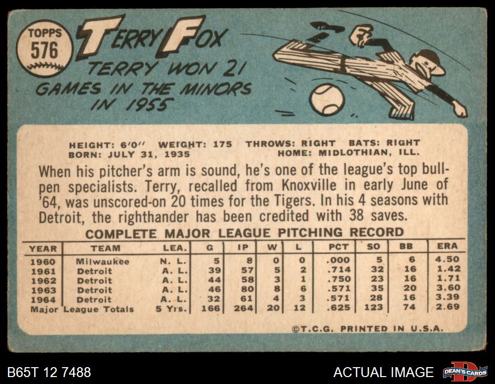 1965 Topps #576 Terry Fox 1 - POOR