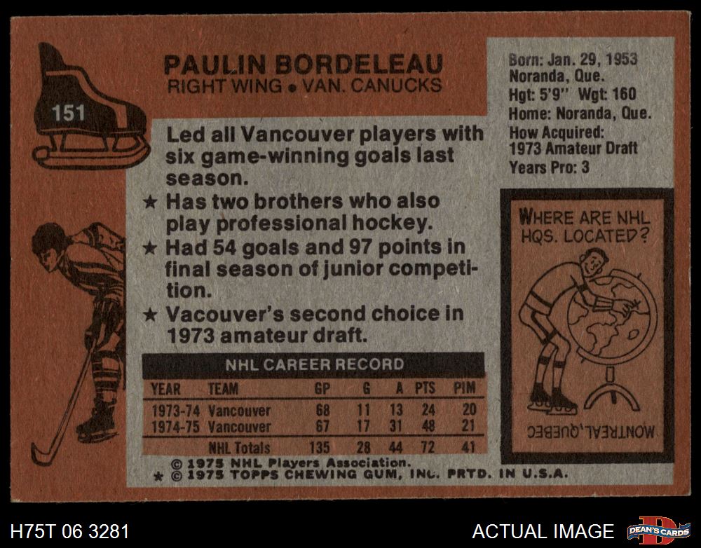 1975 Topps #151 Paulin Bordeleau 4 - VG/EX
