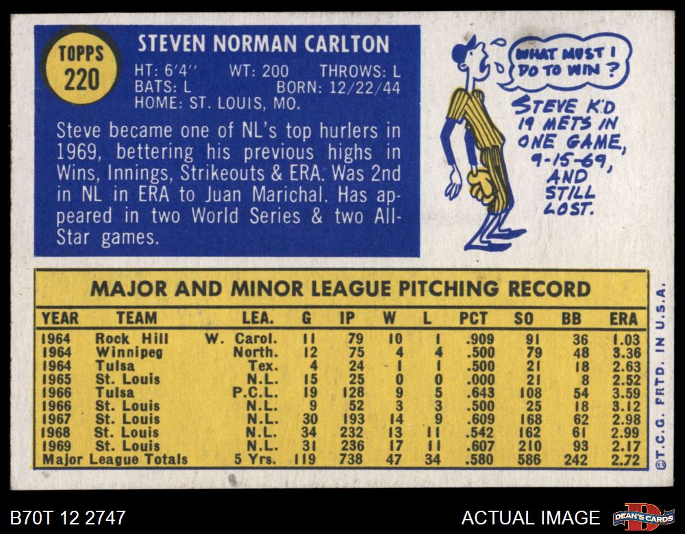 1970 Topps #220 Steve Carlton 6 - EX/MT