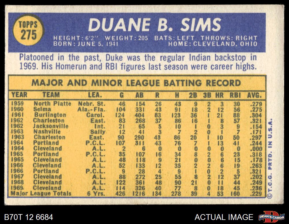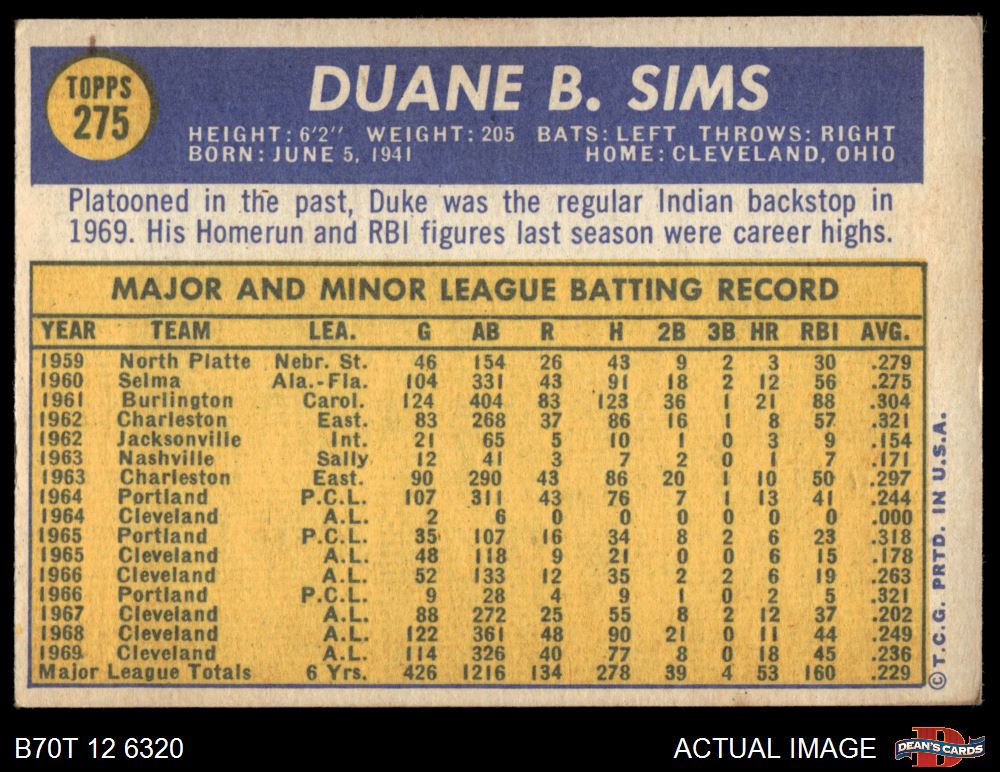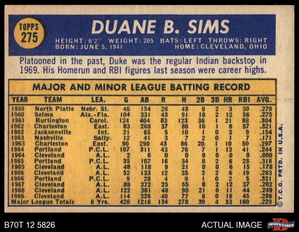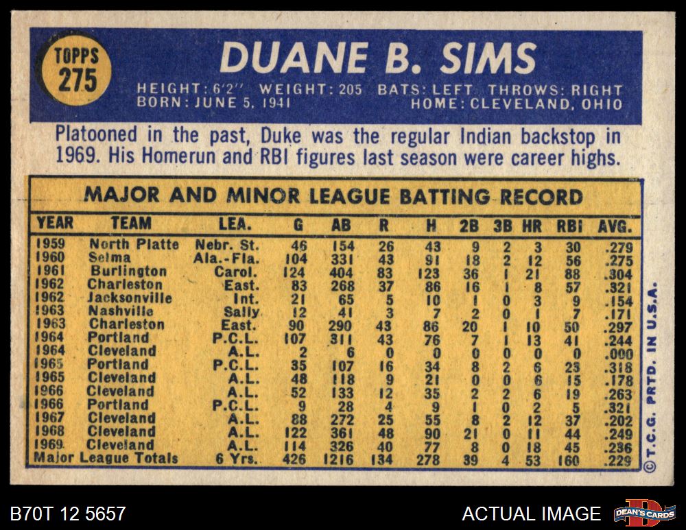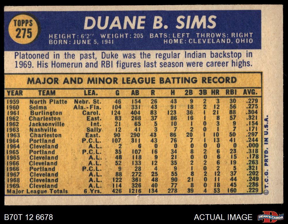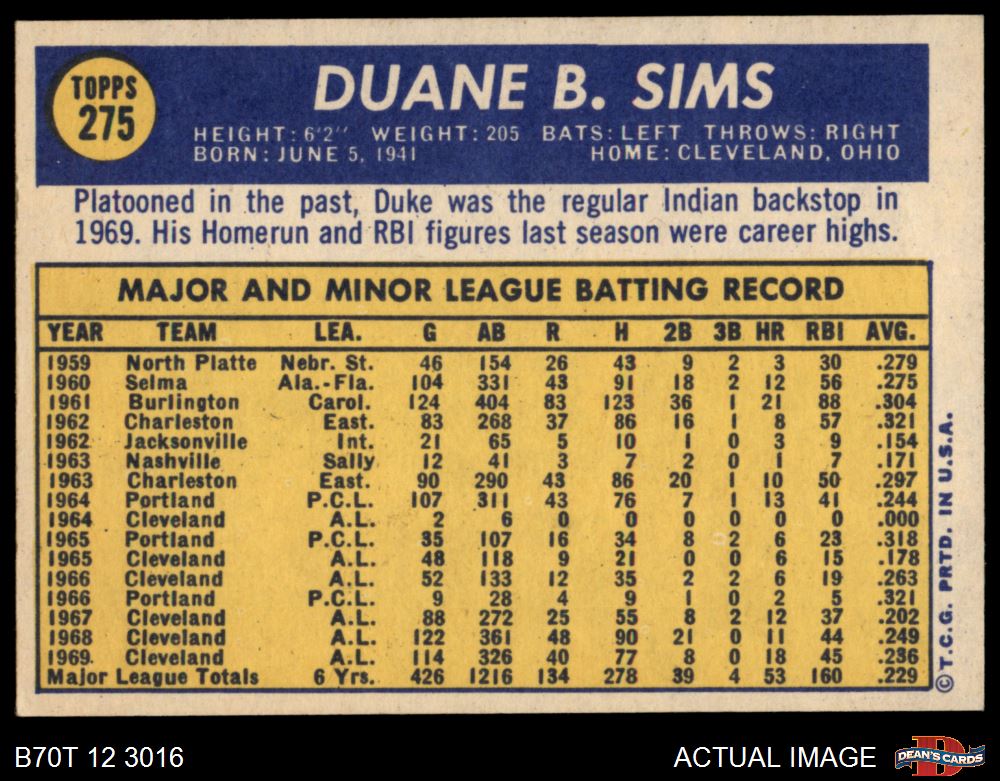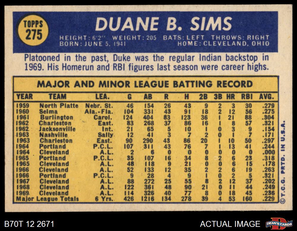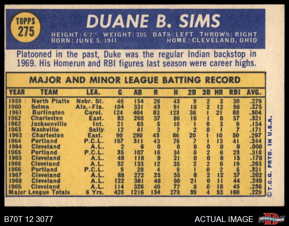 1970 Topps #275 Duke Sims