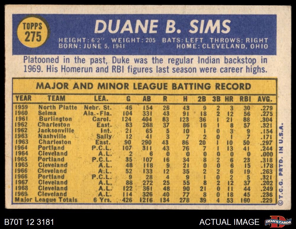 1970 Topps #275 Duke Sims 4 - VG/EX