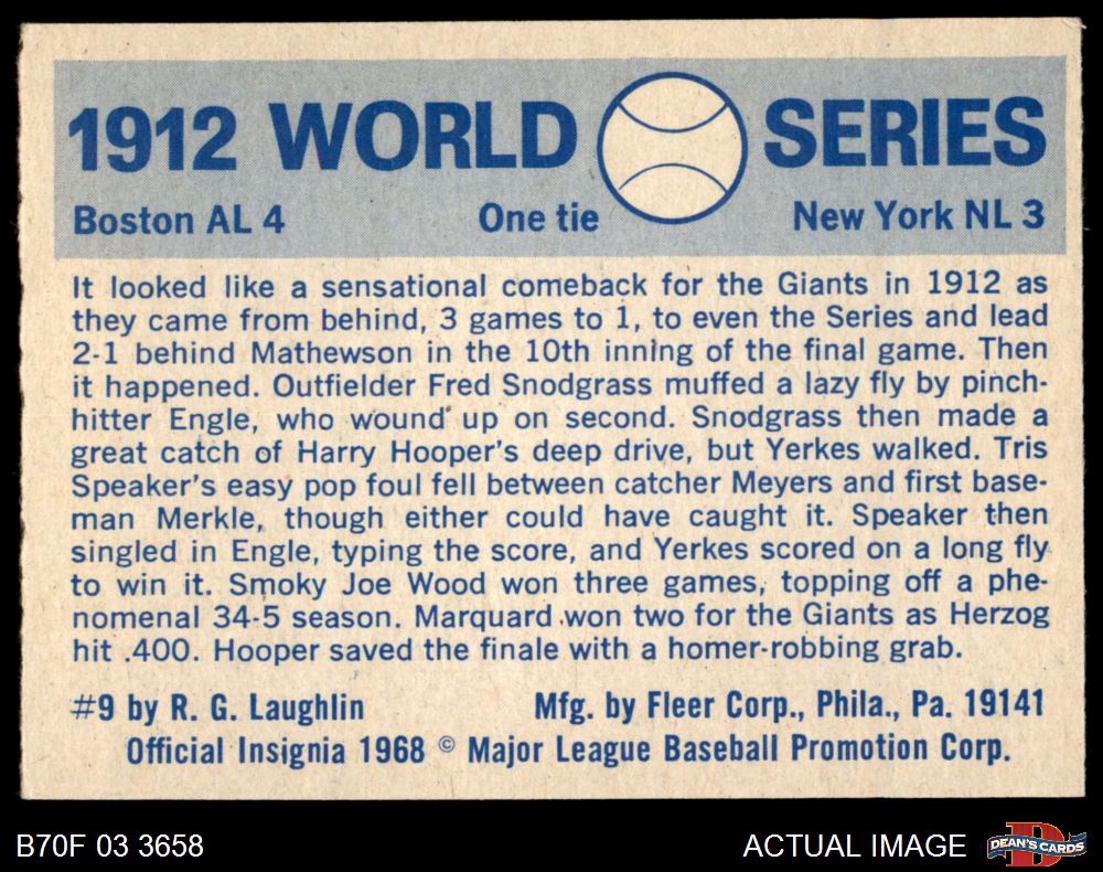 1970 Fleer World Series #9 1912 Red Sox vs. Giants 4 - VG/EX