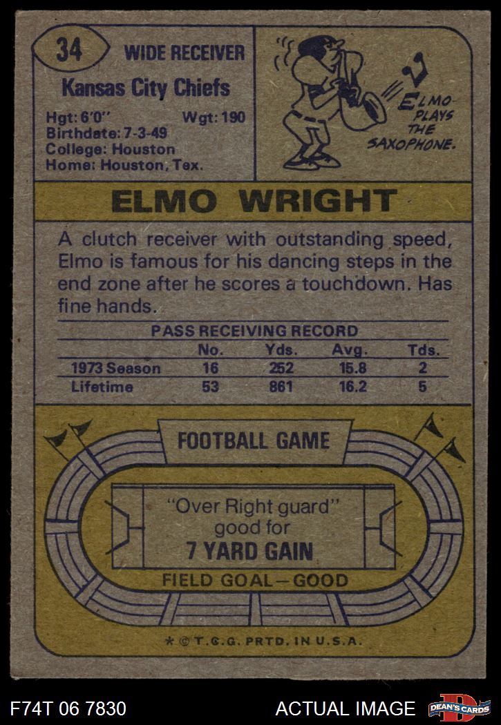 1974 Topps #34 Elmo Wright 4 - VG/EX
