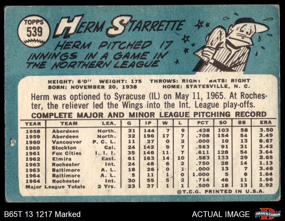 1965 Topps #539 Herm Starrette Front Thumbnail