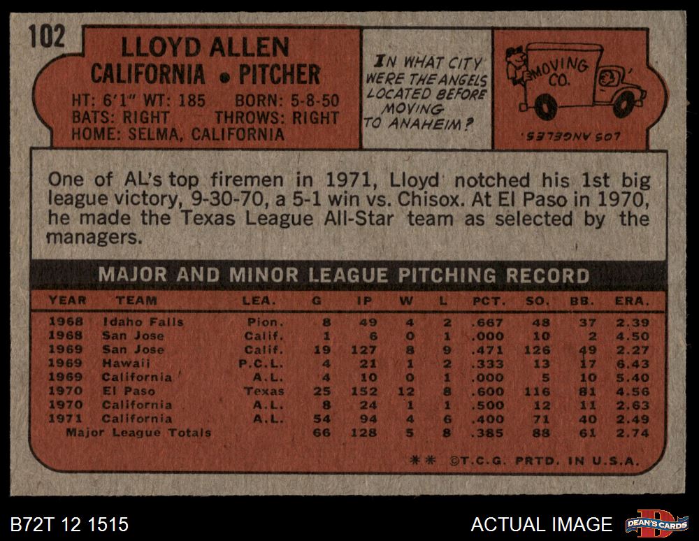1972 Topps #102 Lloyd Allen 5 - EX
