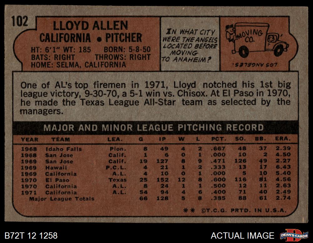 1972 Topps #102 Lloyd Allen 5.5 - EX+