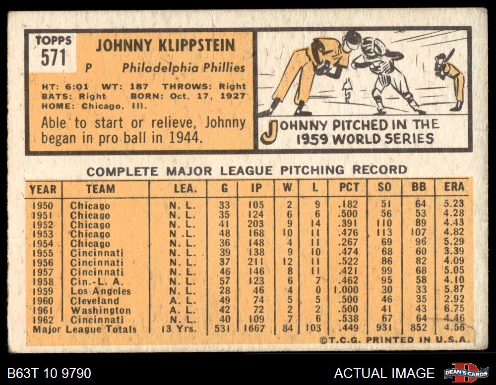 1963 Topps #571 Johnny Klippstein 3.5 - VG+