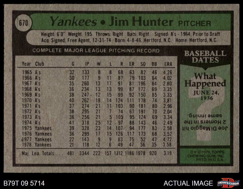 1979 Topps #670 Catfish Hunter 3.5 - VG+