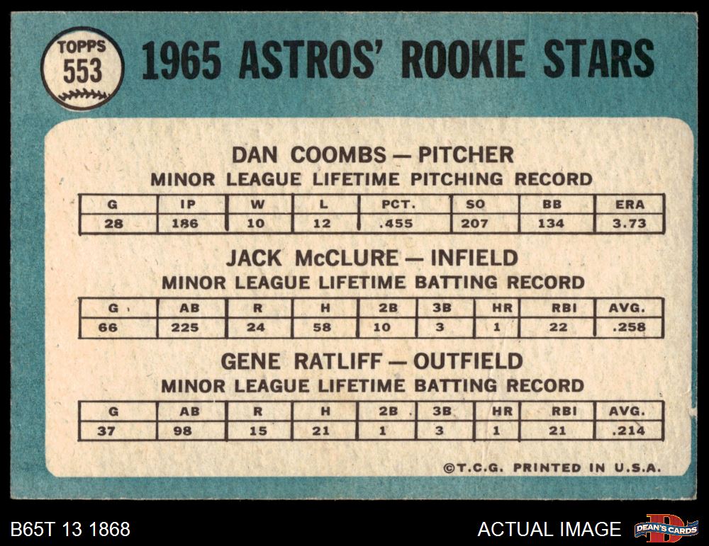 1965 Topps #553 - Jack McClure / Dan Coombs / Gene Ratliff Astros Rookies 5.5 - EX+