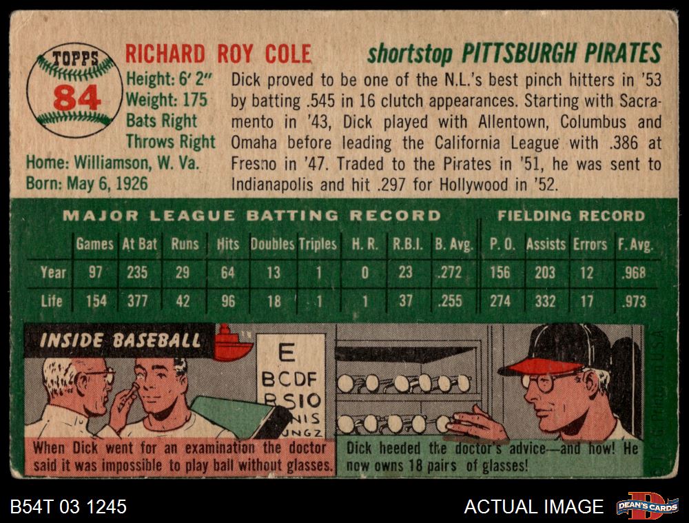 1954 Topps #84 Dick Cole
