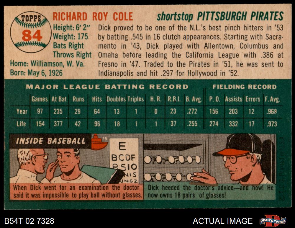 1954 Topps #84 Dick Cole 6.5 - EX/MT+