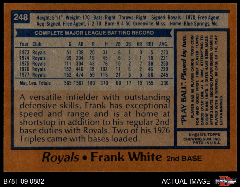 1978 Topps #248 Frank White 7.5 - NM+