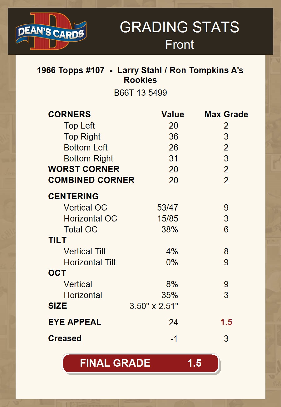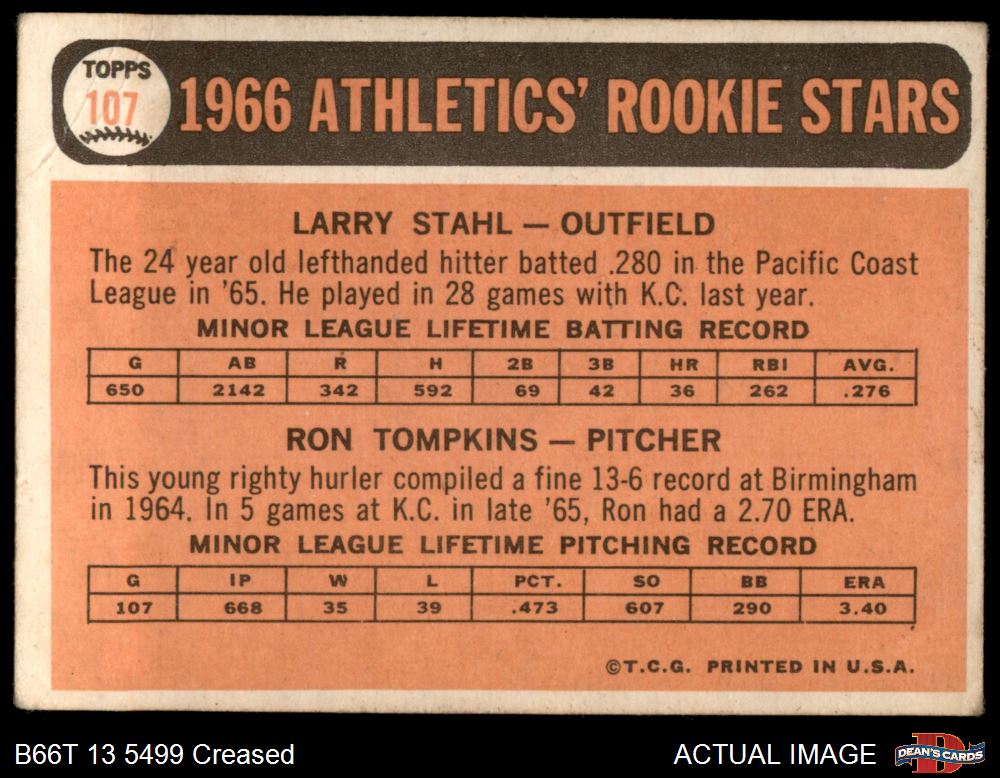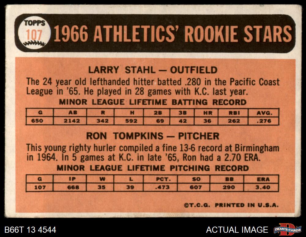 1966 Topps #107 - Larry Stahl / Ron Tompkins A's Rookies 1.5 - FAIR