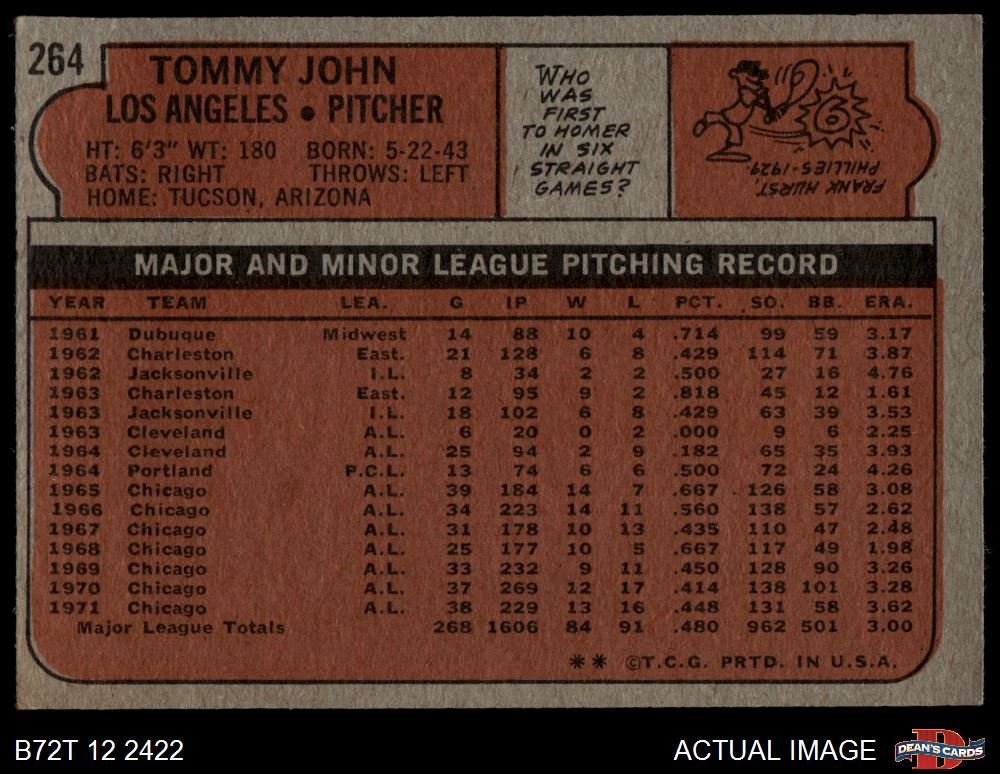 1972 Topps #264 Tommy John