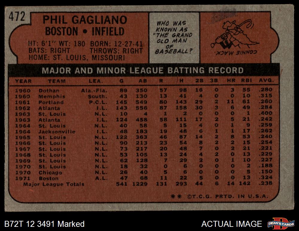 1972 Topps #472 Phil Gagliano 1.5 - FAIR