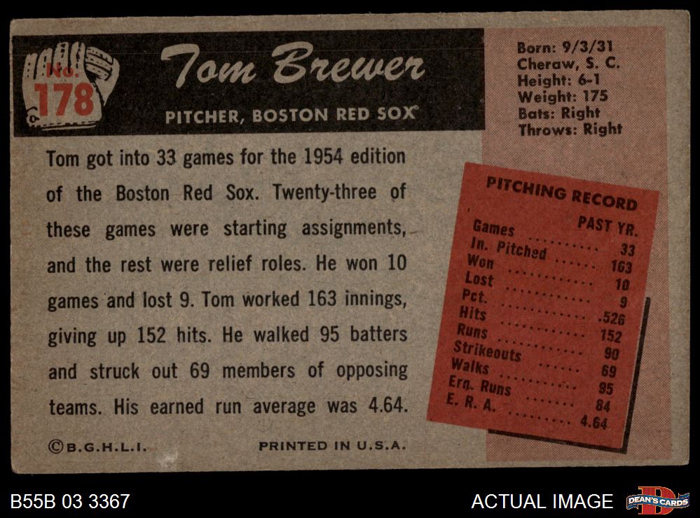 1955 Bowman #178 Tom Brewer