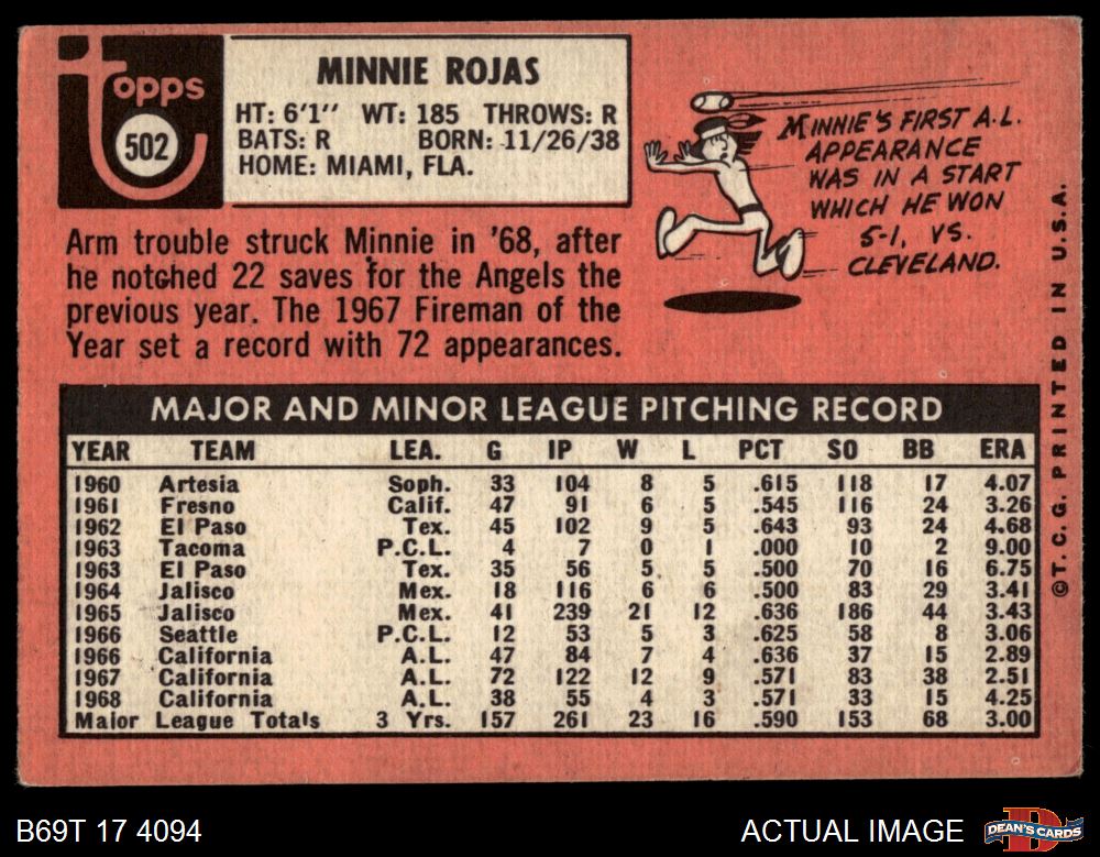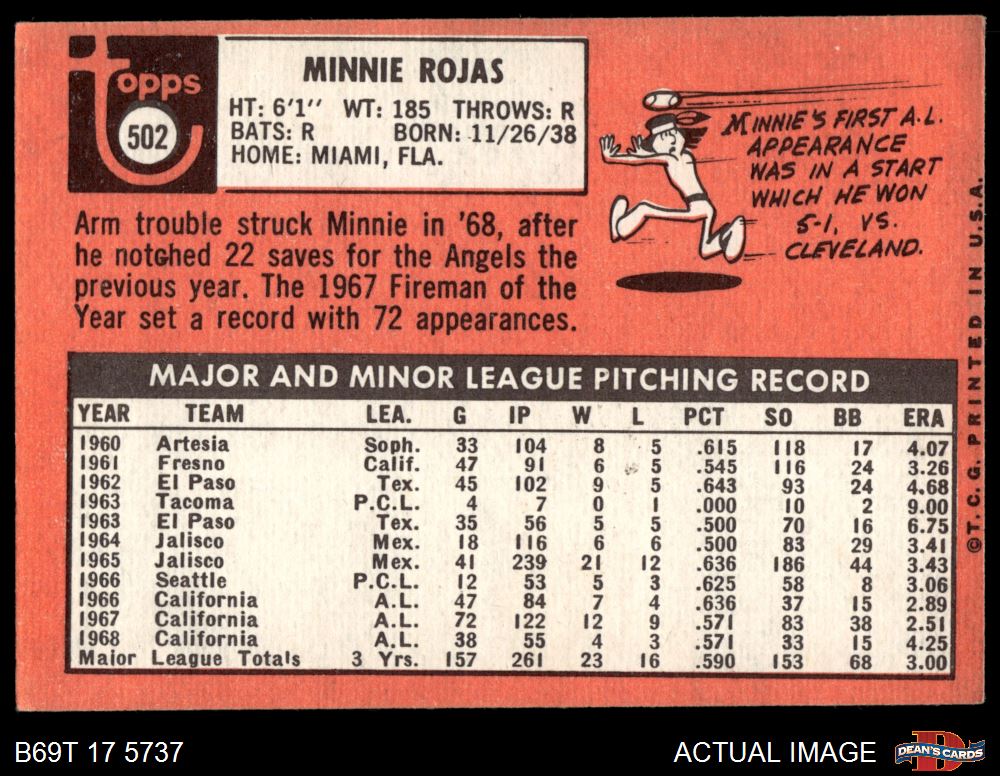 1969 Topps #502 Minnie Rojas 2 - GOOD