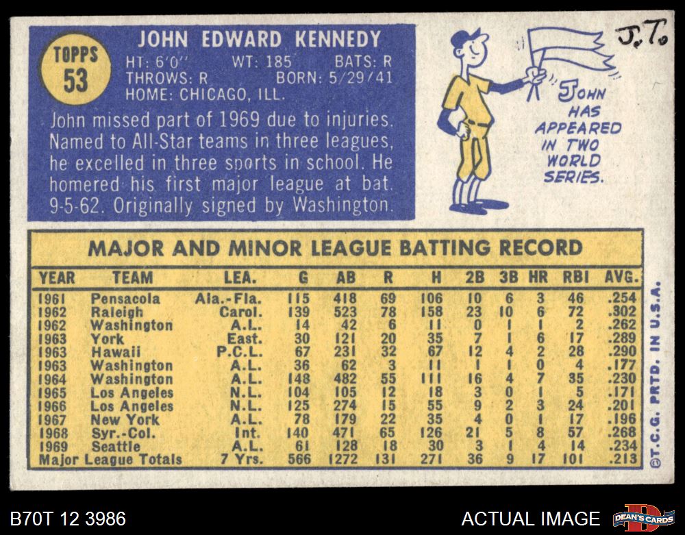 1970 Topps #53 John Kennedy 6 - EX/MT