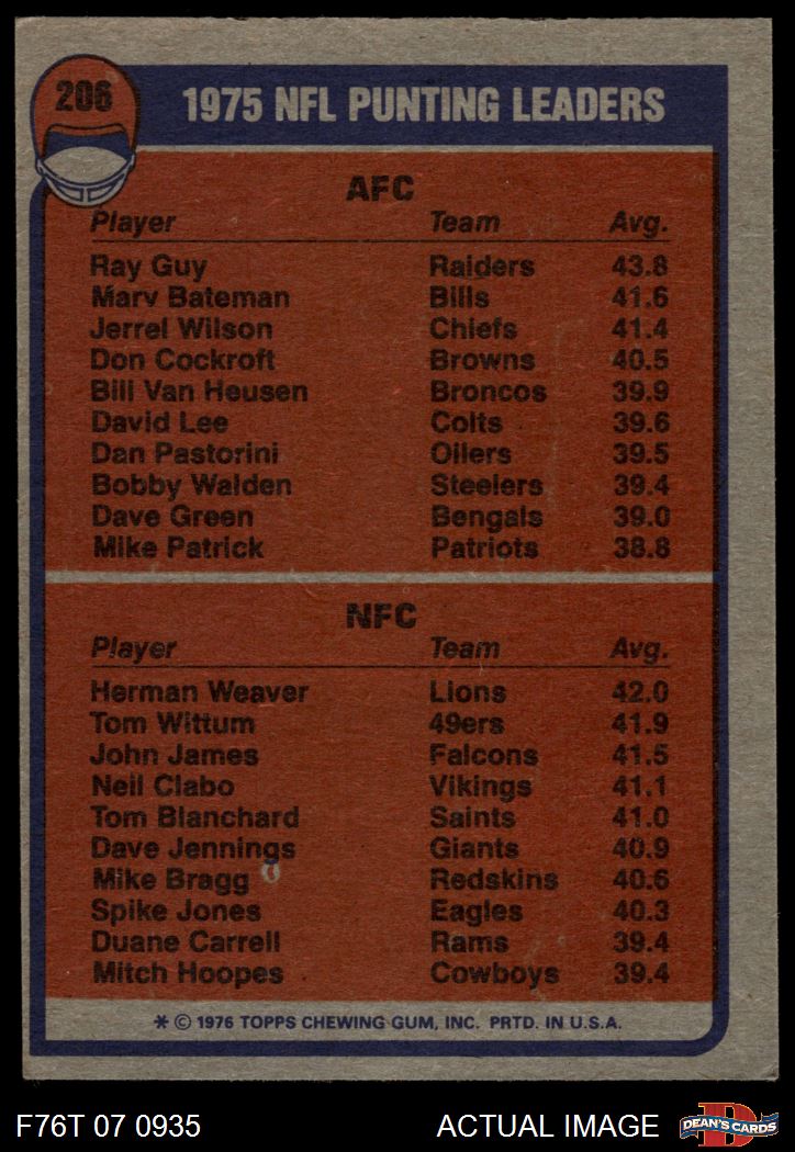 1976 Topps #206 Punting Leaders