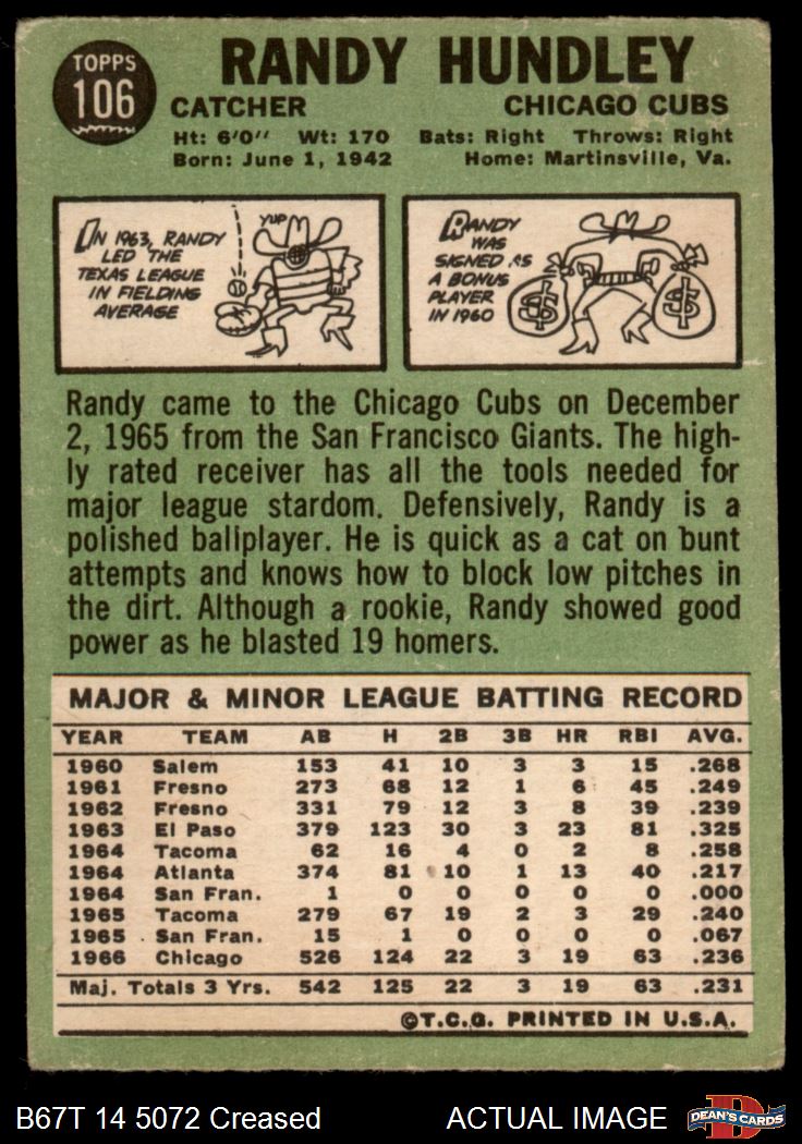 1967 Topps #106 Randy Hundley 1.5 - FAIR