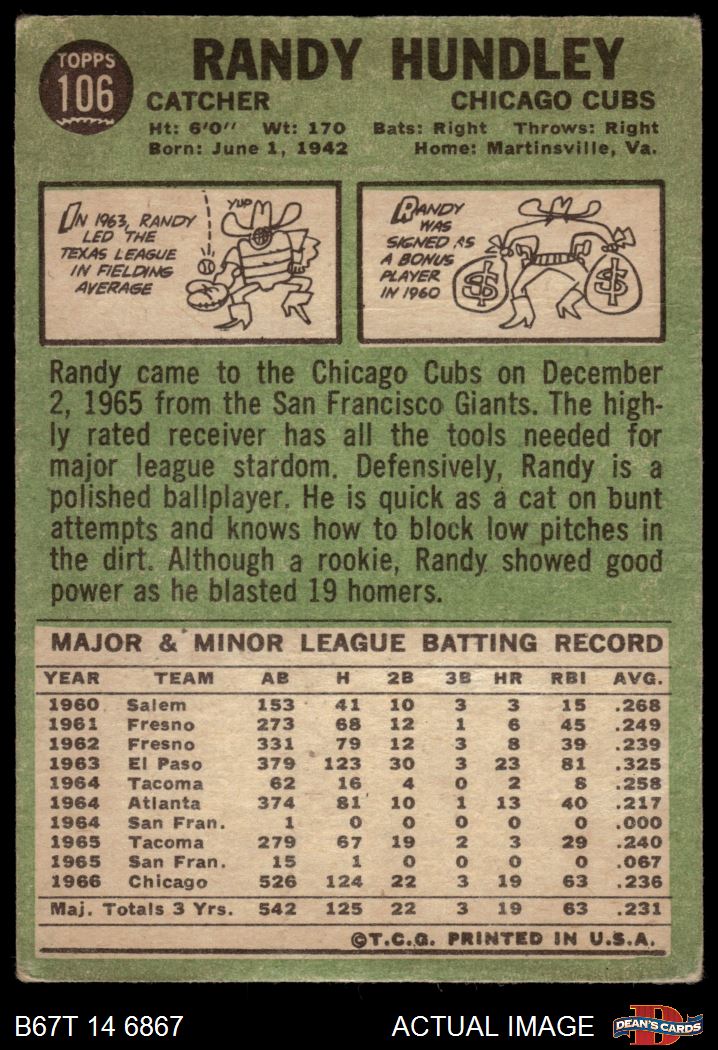 1967 Topps #106 Randy Hundley Front Thumbnail