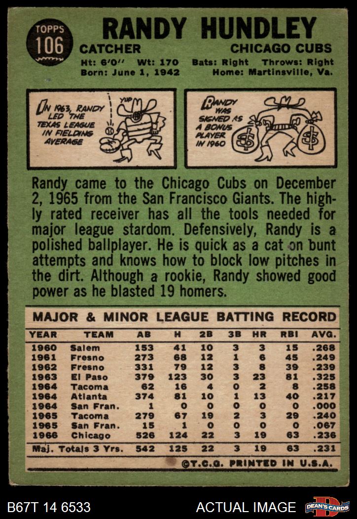 1967 Topps #106 Randy Hundley 2 - GOOD